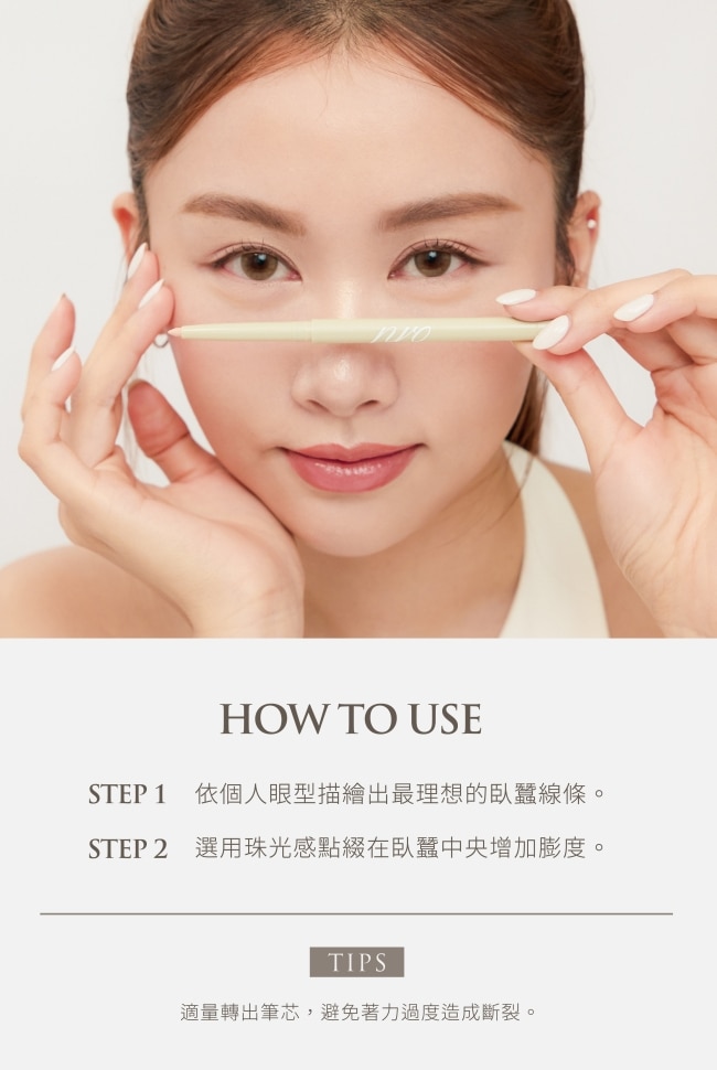 用法 轉出2mm長度的筆芯輕描於臥蠶處。