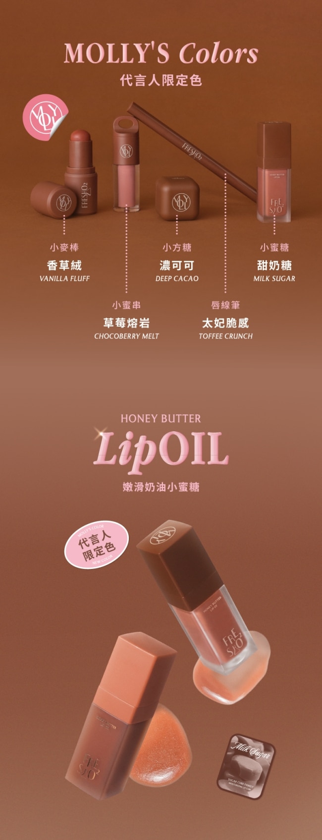 全系列以莫莉代表性的咖啡色為包裝主軸注入全新風格語彙呈現Sugar Cube Family 方糖家族 代言人限定色的獨特魅力。