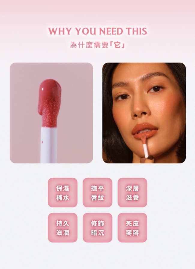 綻放晶透光澤輕鬆打造醫美級的飽滿嘟翹彈潤玻璃感美唇。