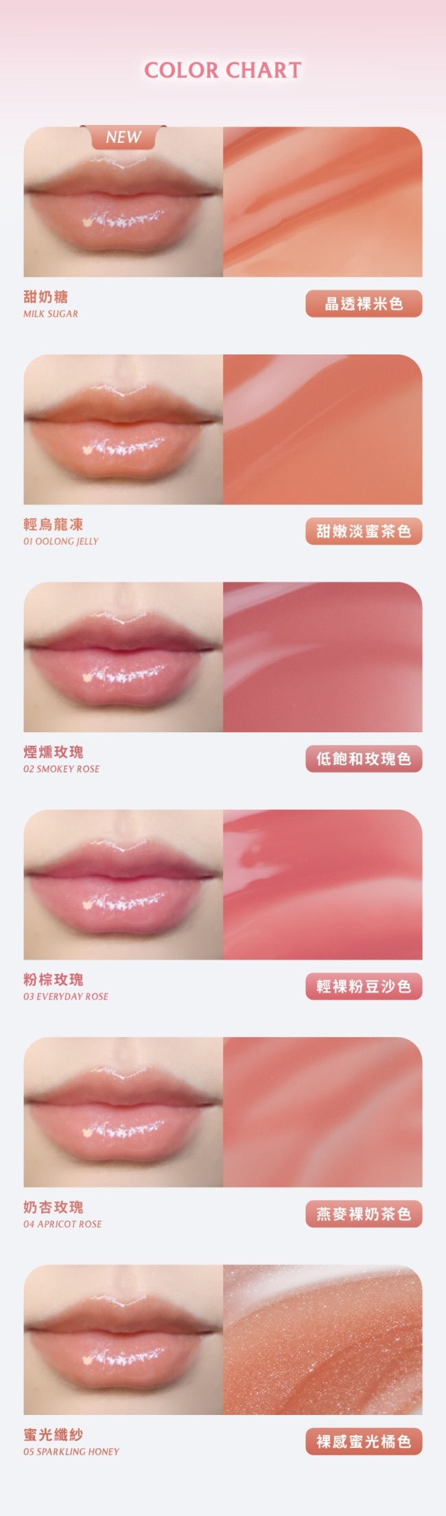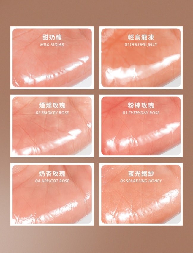 莫莉日常最常出現的玻璃嘟唇感裸米色充分展現晶透高級打造柔嫩自然的亮澤唇。