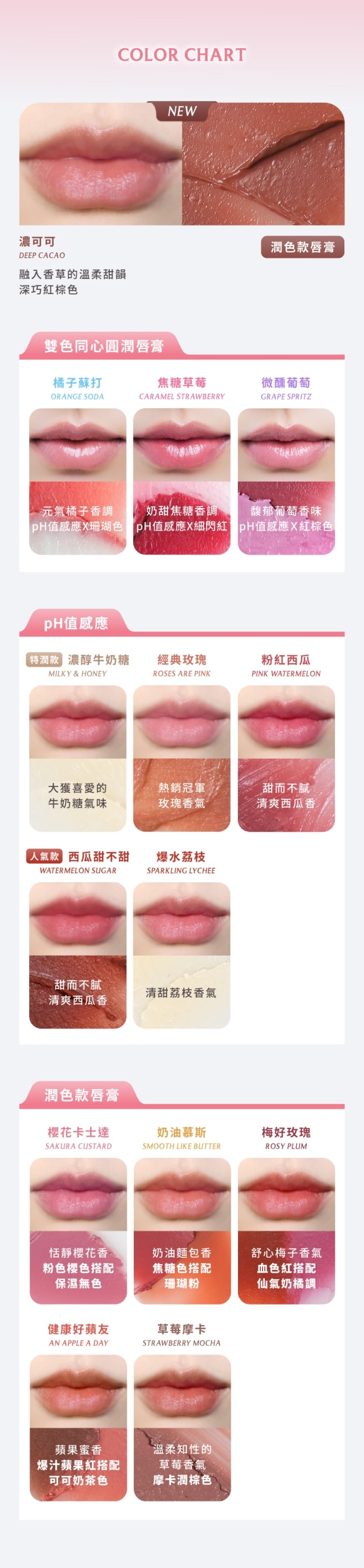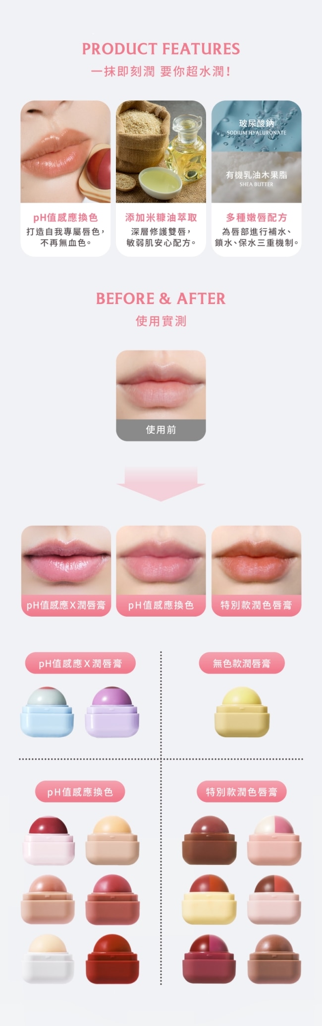 同時為唇部進行補水、鎖水、保水三重機制打造專屬唇色閃耀水潤光澤。