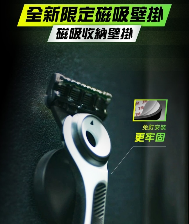 買就送升級配件磁吸壁掛隨刮隨掛保持刀身乾燥整潔讓浴室收納更加方便。