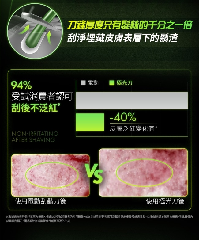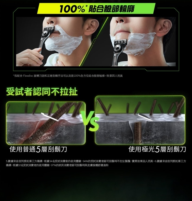 獨特的旋轉刀頭可 100% 緊貼臉部曲線即使是下巴、臉頰或輪廓轉折處也能順暢服貼大幅降低拉扯與泛紅不適。搭載全球首創的極光淨澈科技溫和刮除老廢角質再透過五層刀片深入刮淨打造極淨零渣感的滑順膚觸。吉列極光白刮鬍刀讓帥度全面升級無論朋友聚會、家人出遊或觀看三月棒球經典賽隨時展現最佳狀態。