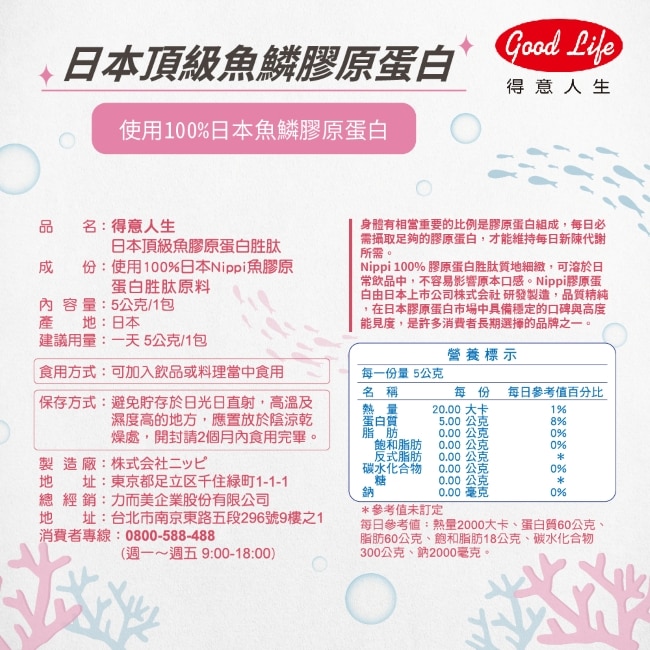 得意人生 日本NIPPI頂級魚鱗膠原蛋白胜肽 (5gx20包)