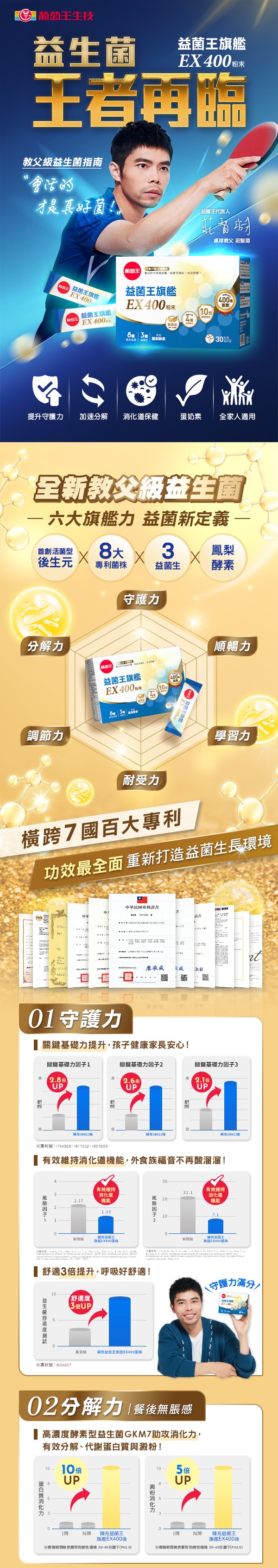 【挑戰業界最高 400億活菌保證】益生菌王者全新升級益菌王旗艦EX 400粉末 30包*1盒