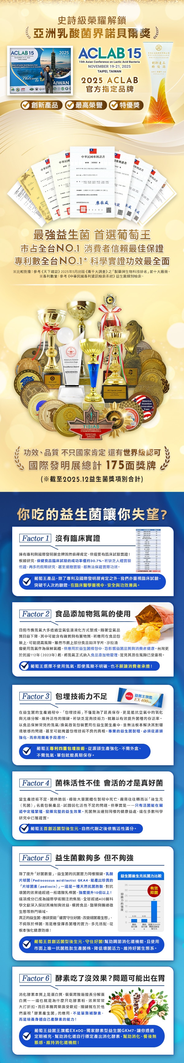 | 商品簡述 | 1.8種在地好菌體質、消化、順暢更精進! 2.3大益菌生一周增加6倍好菌! 3.400億菌數 |