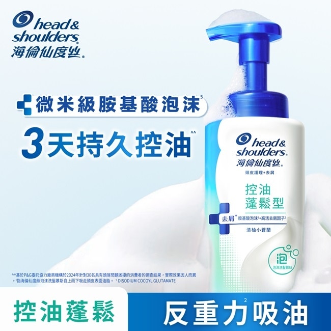 微米級胺基酸泡沫 極淨毛囊* 3天持久控油^
