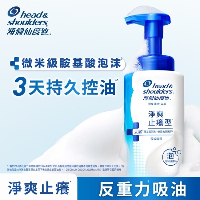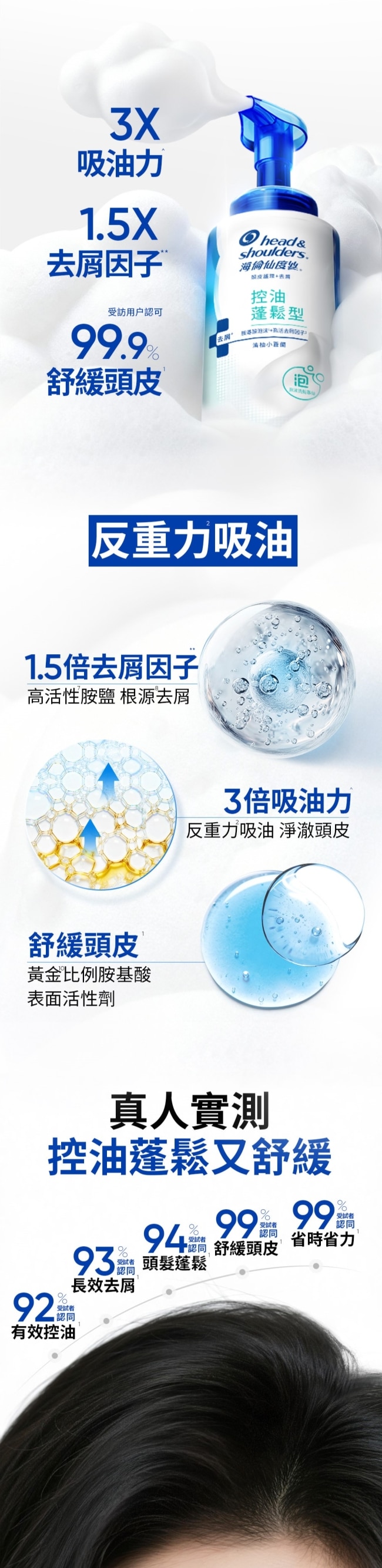 微米級胺基酸泡沫 極淨毛囊* 3天持久控油^