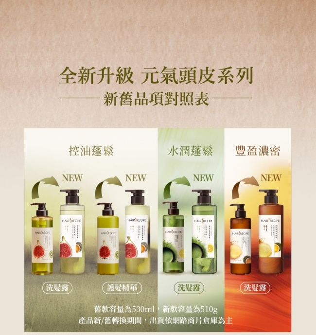 | 商品簡述 | 髮的食譜無花果白茶控油蓬鬆洗髮露510g |