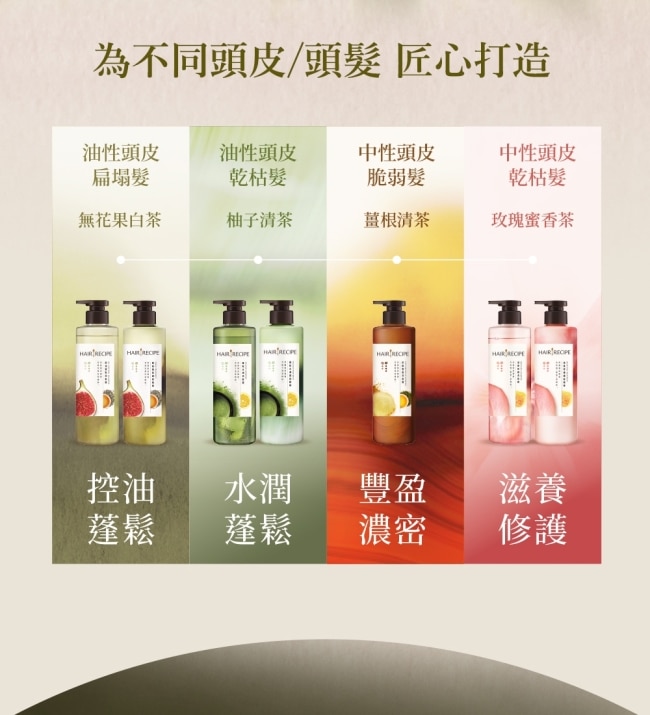| 商品簡述 | 髮的食譜無花果白茶輕盈蓬鬆護髮精華510g |