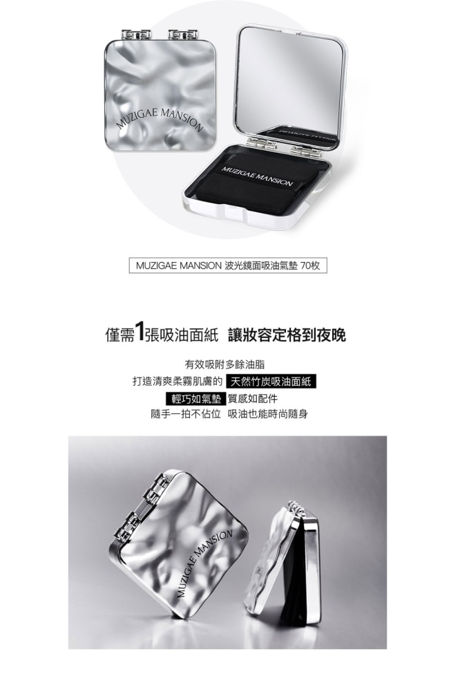 | 商品簡述 | MUZIGAE MANSION 波光鏡面蜜粉吸油面紙 70枚 |