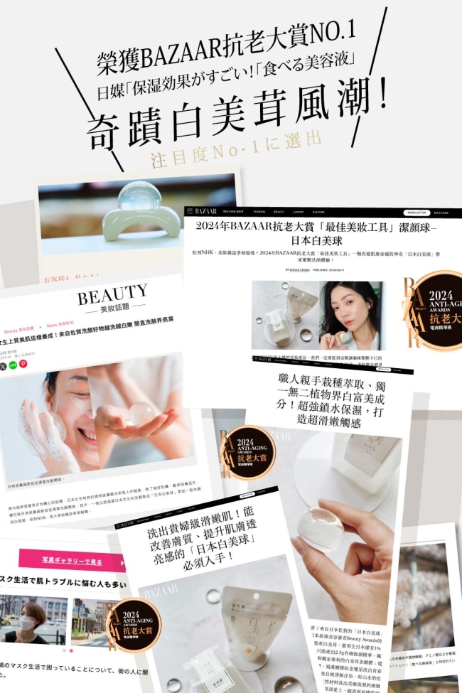 | 有效期限 | 白美茸滑嫩洗顏球 [日本白美球]:三年 波光鏡面蜜粉吸油面紙:五年 |