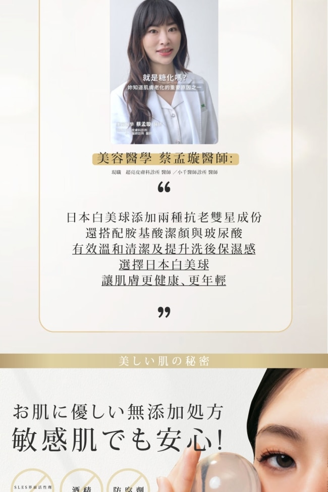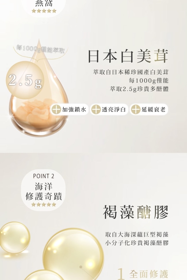 •修護肌膚世界頂級原料(獨家白美茸多醣體、褐藻醣膠)