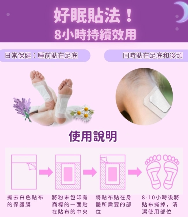 建議睡前貼足底可加一塊貼於後頸加強效用