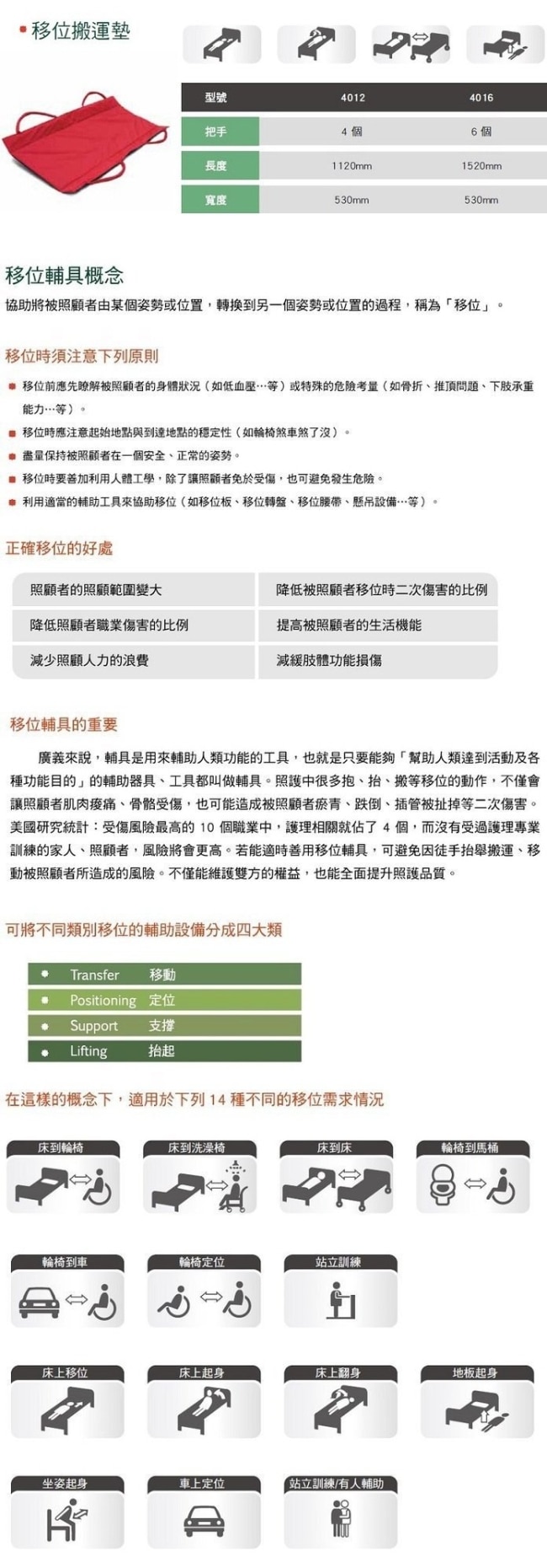 | 商品簡述 | 4012 移位搬運墊 112X53cm 瑞典製造 |