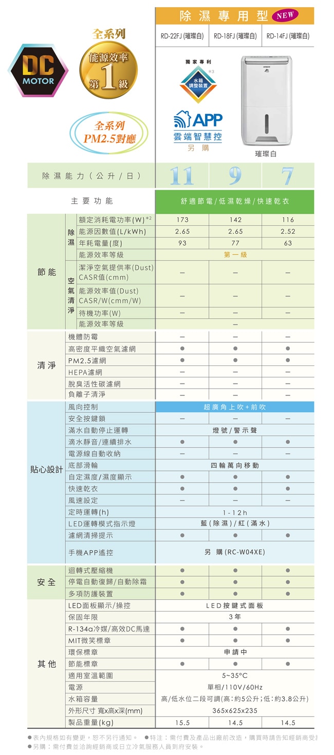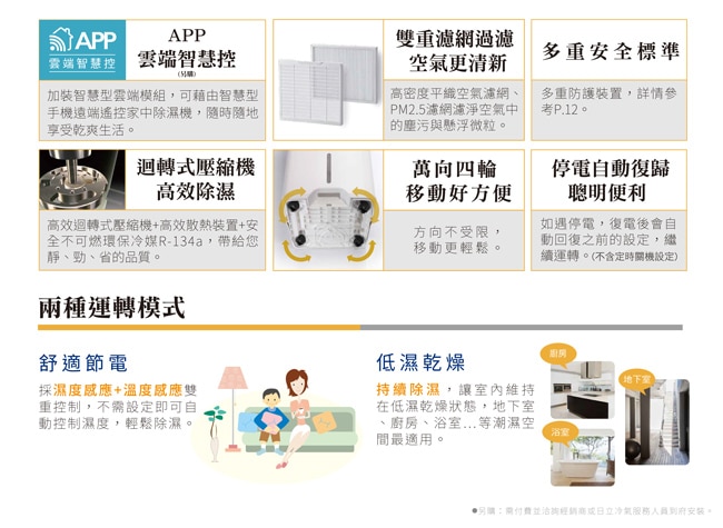 主要功能舒適節電/低濕乾燥/快速乾衣