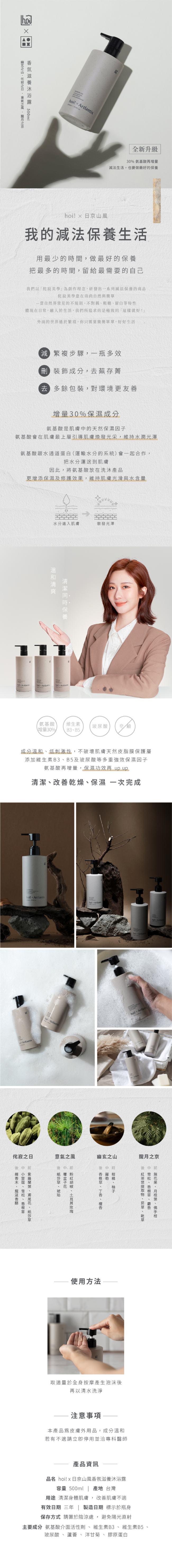 | 商品簡述 | hoi x 日京山風-香氛滋養沐浴露500ml-朧月之京 |