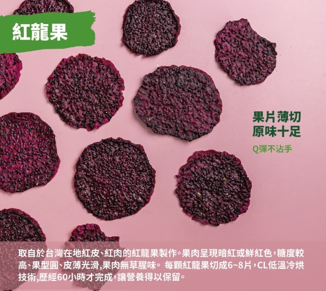 4.紅龍果片50g : 紅龍果片薄切 原味十足 Q彈好吃 不沾手