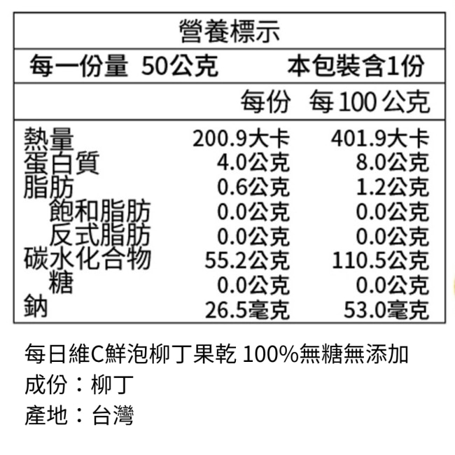 | 內容物名稱 | 每日維C鮮泡柳丁果乾2包組(每包50克) |