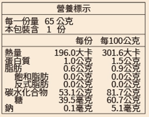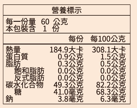 | 注意事項 | 產品不含防腐劑及添加物請保存於乾燥陰涼區拆封後請儘速使用 。 |