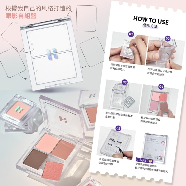使用方法:沾取適量眼影粉層加堆疊打造亮麗眼