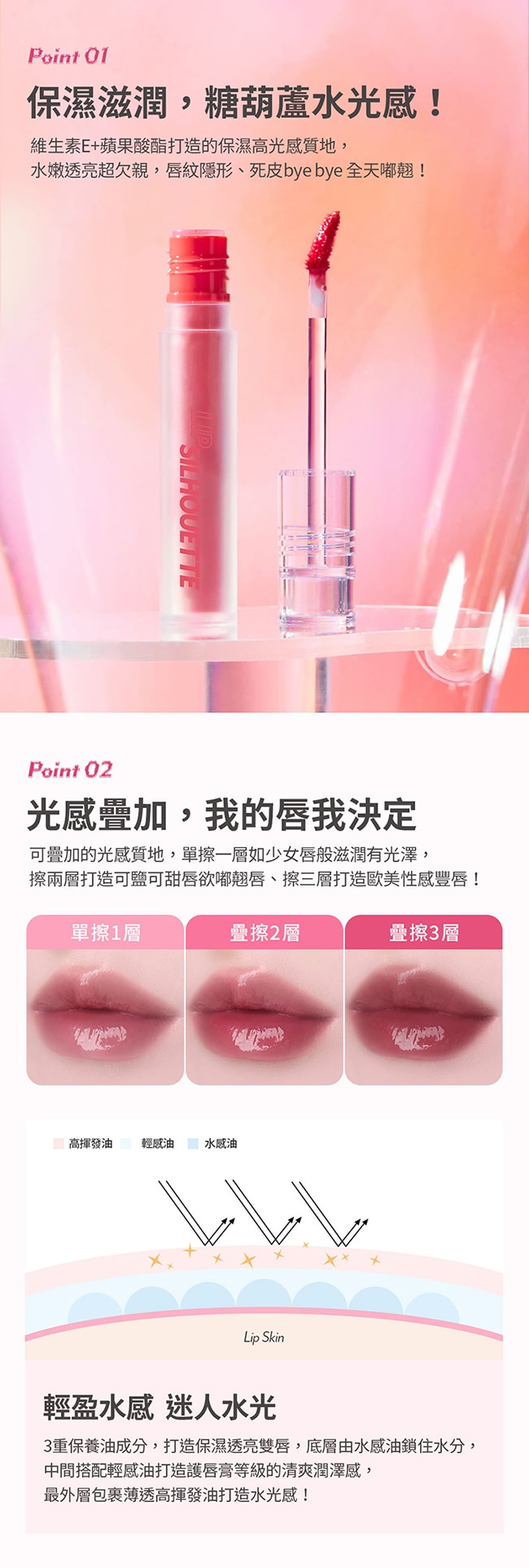 可疊加的光感質地單擦一層如少女唇般滋潤有光澤
