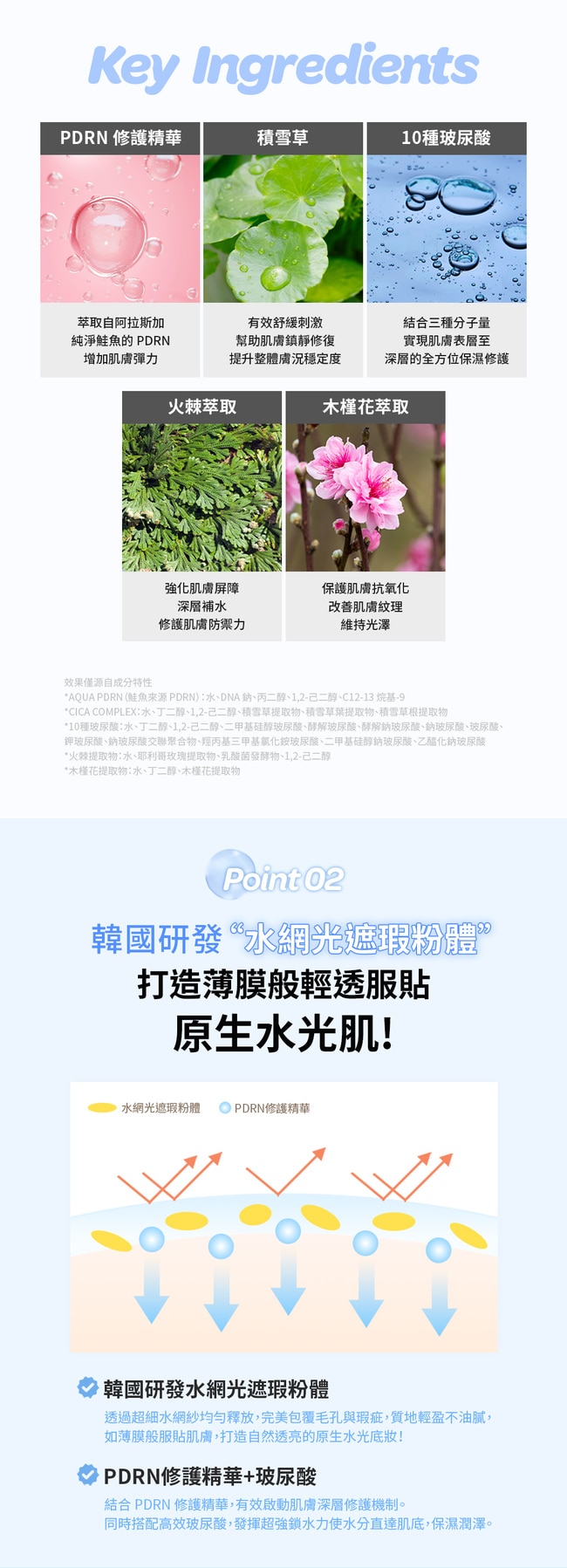 | 商品簡述 | 開架首創PDRN水光修護 x 妝養合一光圈肌 |