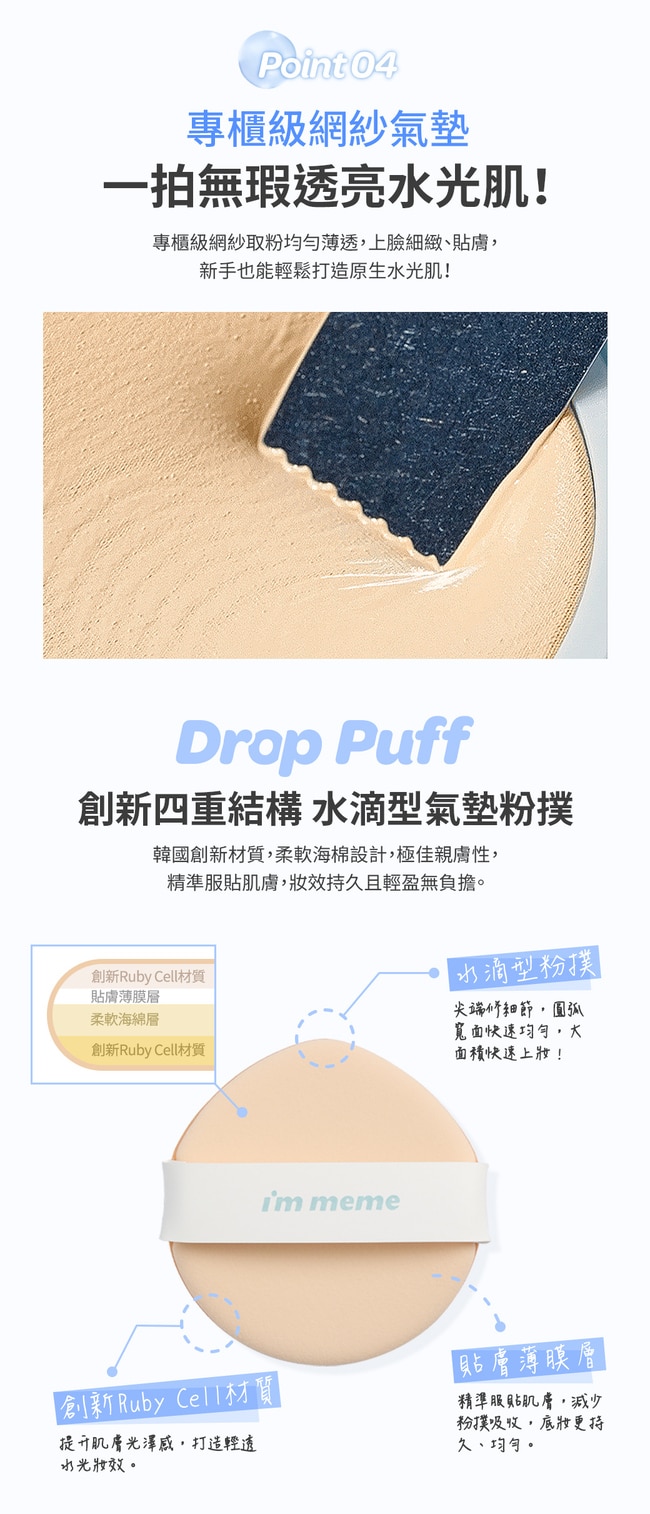 打破水光低遮瑕迷思!韓國研發”水網光遮瑕粉體”透過超細緻水網紗均勻釋放完美包覆毛孔、瑕疵質地輕盈不油膩打造薄膜般清透服貼原生水光肌!