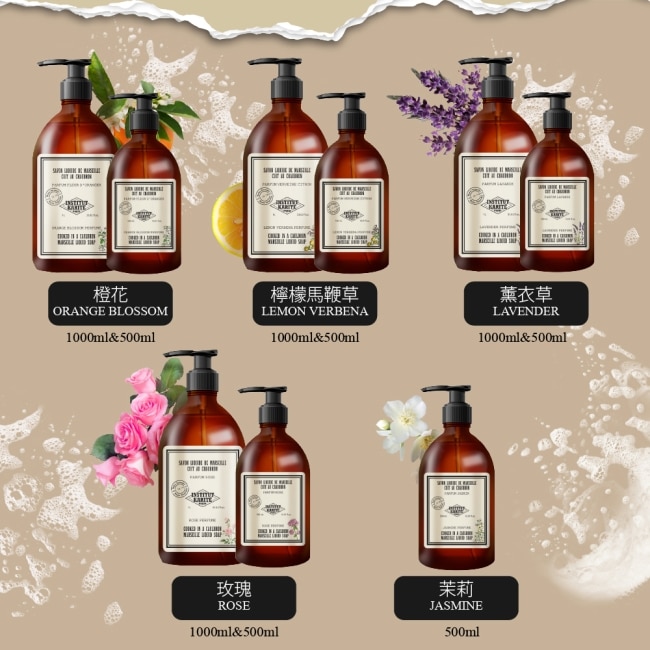 頂級草本茉莉花園保濕馬賽液體皂特色