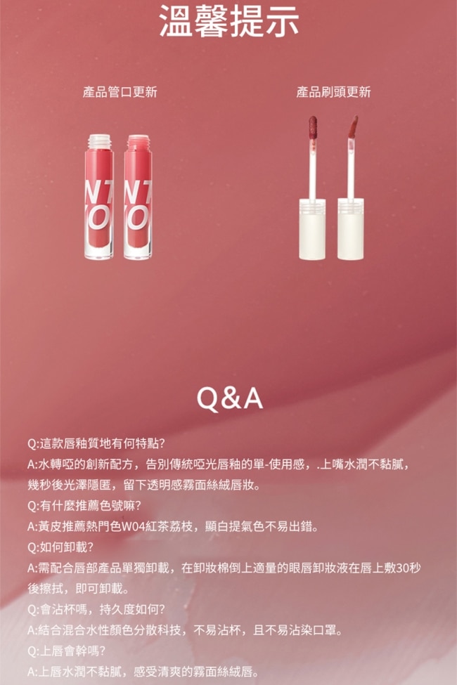 使用方式:使用唇刷沾取唇泥於唇部均勻抹開