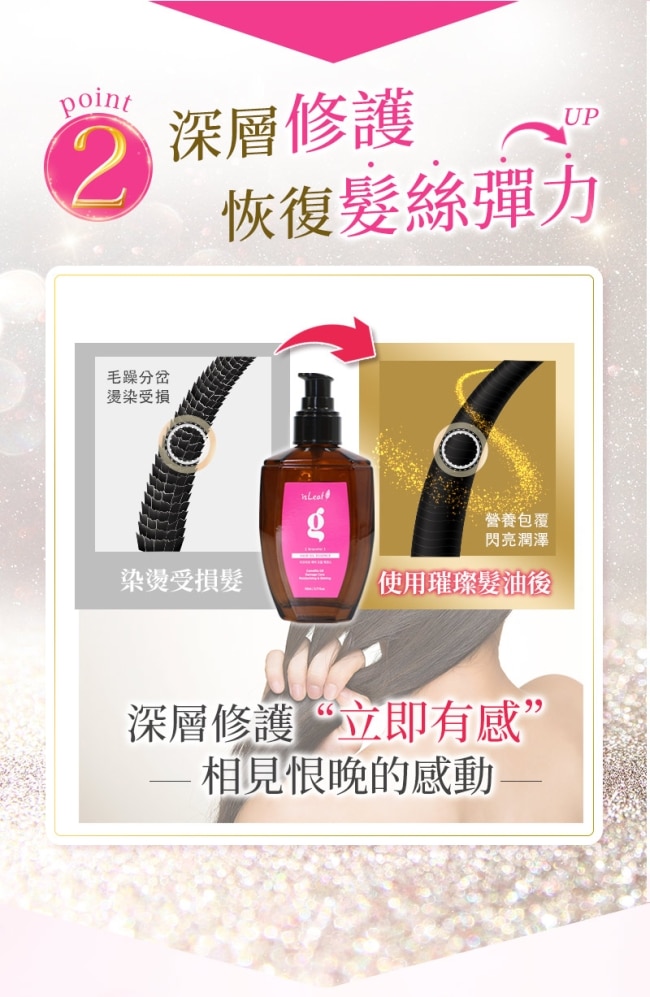 毛躁受損/染燙修護-恢復秀髮流失的營養及光澤 給予適當的調理修護 再也不用害怕因染燙後的秀髮 造成髮絲乾澀分岔毛躁受損-給予秀髮柔順營養 輕鬆修護毛躁受損髮質 再也不會因分岔/乾枯/毛躁而感到困擾專業沙龍級配方 讓你在家也可以輕鬆護髮~+維他命E 可以滋養髮絲 增加柔順度及光澤度免沖洗/超滋養/淡雅香調 蛻變女神秀髮一點都不難~