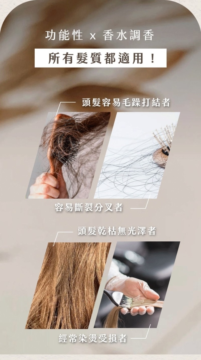 | 商品簡述 | 防斷修護、豐盈柔順添加水解小麥蛋白、人參萃取、維他命E、維他命原B5 |