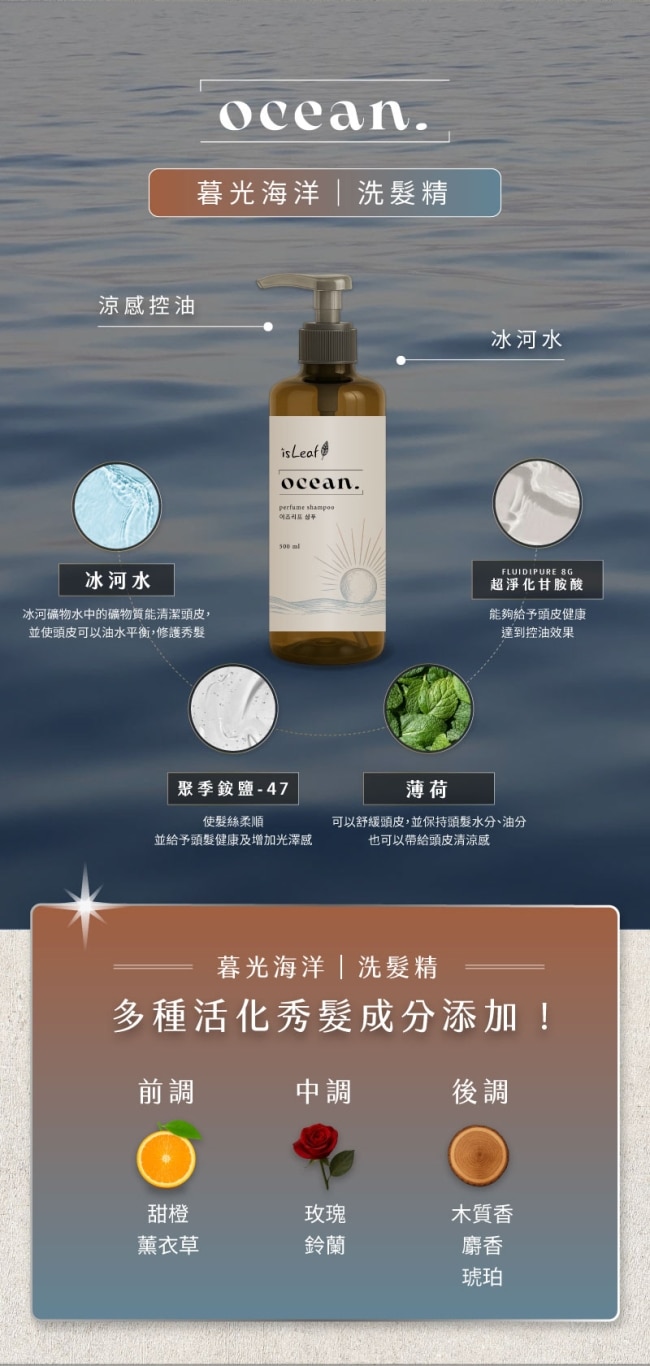 暮光海洋-- 涼感控油洗髮精冰河水、薄荷、超淨化甘胺酸、聚季胺鹽-47