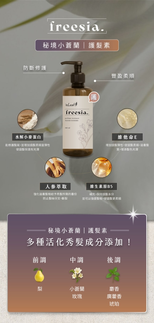 【品名】isLeaf純淨香氛護髮素500ml-秘境小蒼蘭