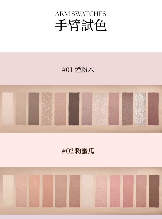 | 商品特色 | · 新手友好易上手低飽和高顯色暈染無技巧要求新手也可輕鬆打造完美眼妝顯色自然且不輕易脫妝、飛粉色彩融合度高。 |