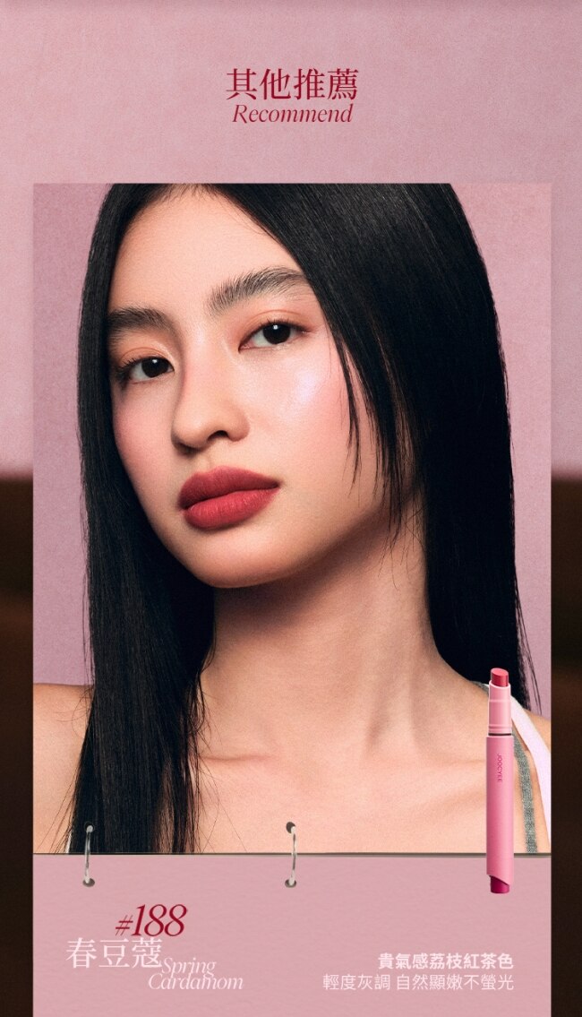 | 商品特色 | 1.濃-所見及所得低飽和,高覆蓋,上唇薄薄一層也顯色,深唇友好 |
