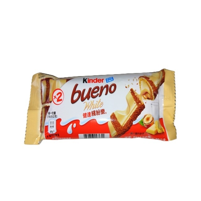 健達繽紛樂(白)2入裝 :香濃白巧克力包裹著鬆脆可口威化含綿滑牛奶及榛果內餡可可脆粒點綴100%牛奶來自歐洲。