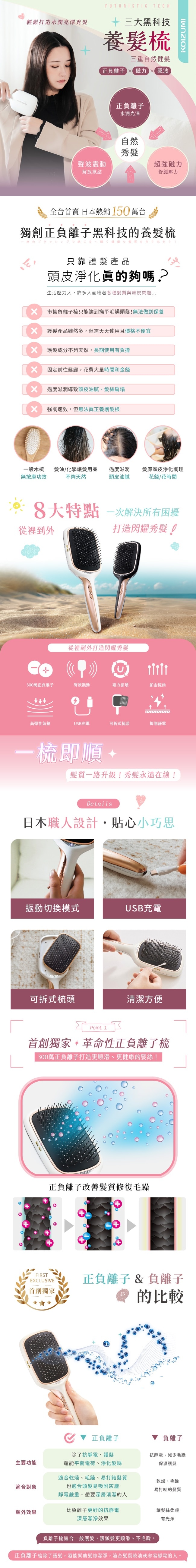 | 商品簡述 | 300萬正負離子 光澤度UP革命性正負離子梳養護秀髮 |