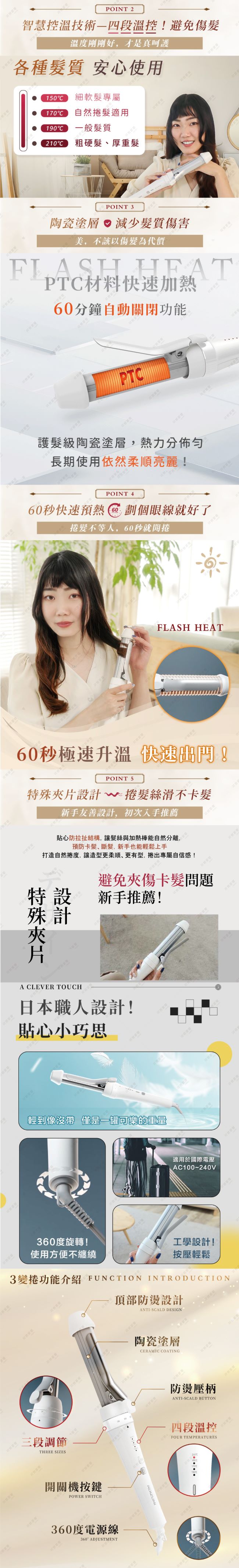 | 商品簡述 | 3種捲度一轉即變新手推薦首選 輕巧造型不費力 國際電壓-搭配轉接頭即插即用 |