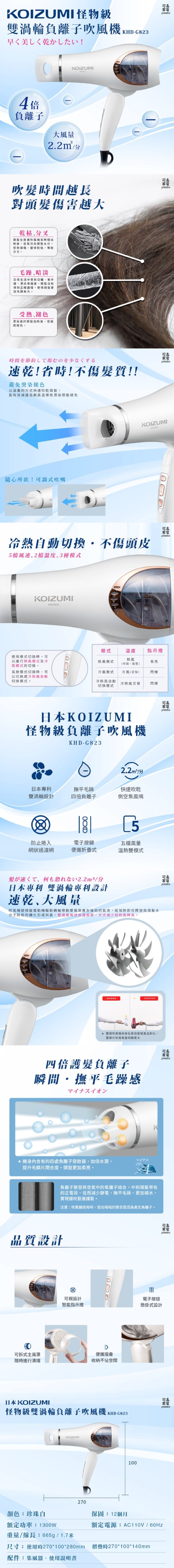 日本KOIZUMI小泉成器 怪物級雙渦輪負離子吹風機 (KHD-G823-WE)