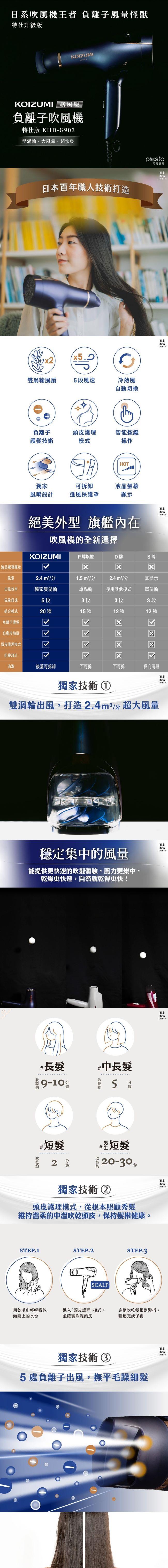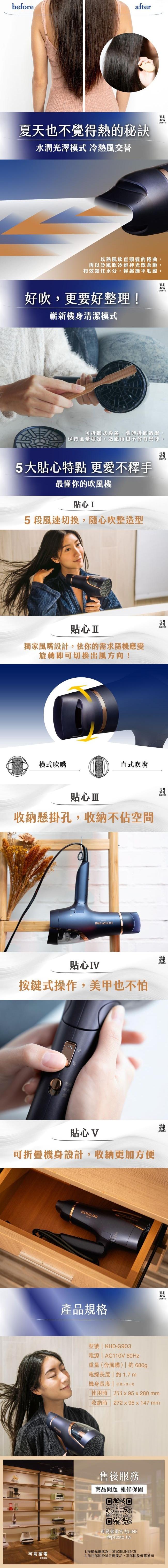 | 商品簡述 | 業界領先2.4m3/分超大風量日本專利雙渦輪風扇設計 頭皮護理模式從根本養護秀髮 |