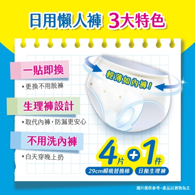 一貼即換-不用換內褲。生理褲設計-取代內褲防漏更安心。不用洗內褲-白天穿晚上丟。取代整件內褲防漏更安心。