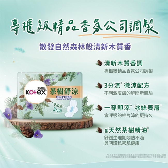 | 商品簡述 | 靠得住茶樹舒涼棉木質香28cm(9+6)片衛生棉 |