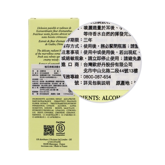中文品名L'OCCITANE 歐舒丹 桂花杏桃淡香水(50ml)