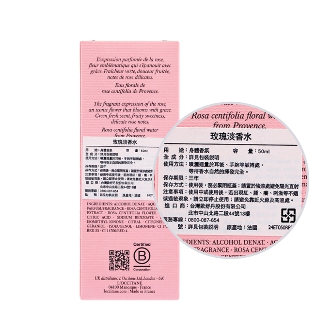 中文品名L'OCCITANE 歐舒丹 玫瑰淡香水(50ml)