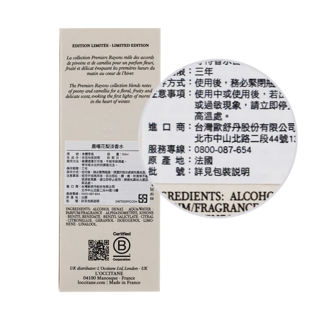 中文品名L'OCCITANE 歐舒丹 晨曦花梨淡香水(50ml)