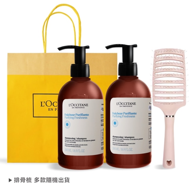 中文品名L’OCCITANE 歐舒丹 經典草本洗髮乳(500mlX2)送蓬鬆按摩梳-淨涼X2-專櫃公司貨