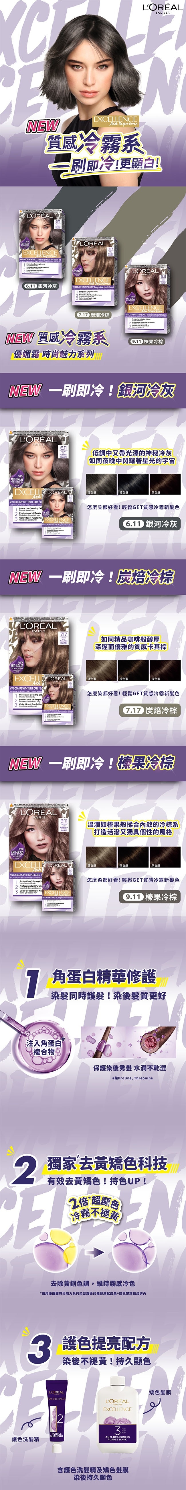 潮流新色超顯色快速提淺至少2.5度髮色,深色髮可輕鬆擁有仙氣感十足的潮流新色