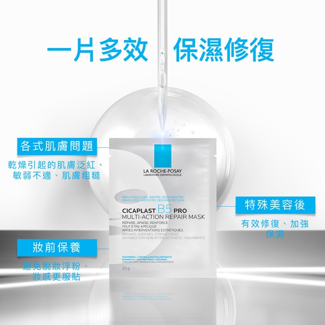 各種肌膚問題如乾燥、粗糙敏弱、不適特殊美容行為後適用的高效修復保濕面膜,亦可作為妝前保養面膜,幫助妝感更服貼。