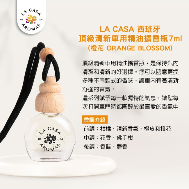 LA CASA 西班牙頂級清新車用精油擴香瓶 7ml(橙花)